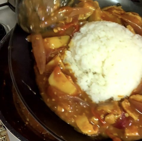 카레가 모두 끓으면 밥을 모양있게 덜어