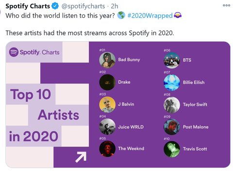 전세계 아티스트 통틀어서 스포티파이 스트리밍 6위도 대단함. 그룹으로는 1위래. 한국에도 스포티파이 서비스 시작하면 더 잘나갈 듯.