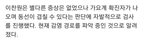 무증상인데 나도 확진상태일수도 있는거 아니냐 갑자기 개무섭네 그래도 이찬원이 자진해서 검사받아서 다행이다 더 나중에 하거나 안했으면 큰일났을듯 동선이 겹친건데 확진이면 ㄷ