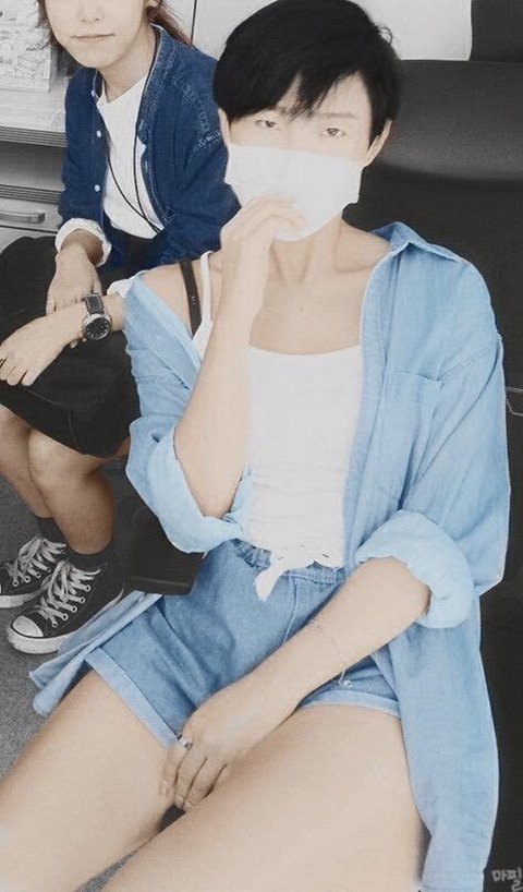 : 처음 봤는데 하얀 헤어밴드에 검은 탱크탑 핫팬츠 레드립에 호피 퍼 코트를 입고 있어서