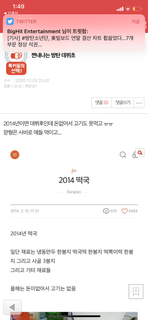 같 소속이라 빅히트 팔로우 해놓았는데 타이밍 오진다ㅋㅋ 이거 볼 때 딱 오냐