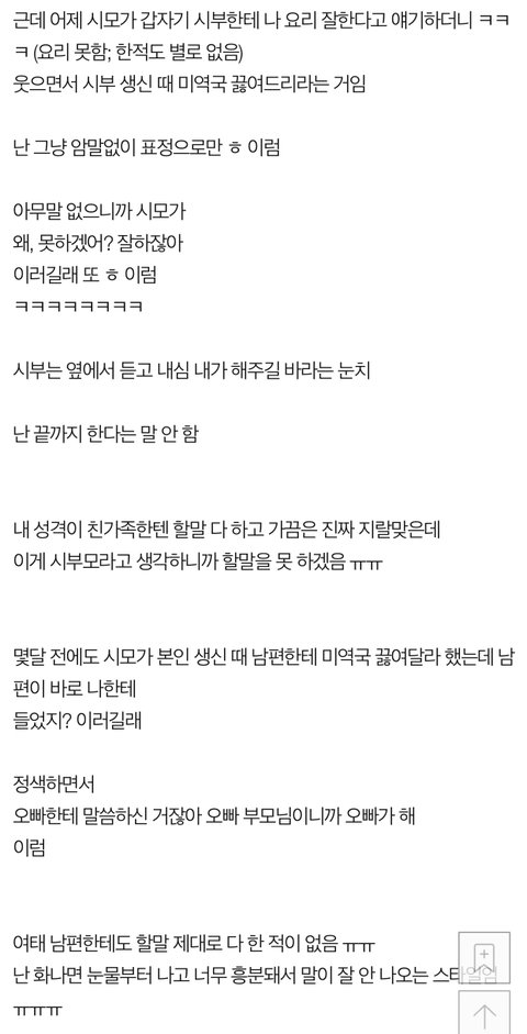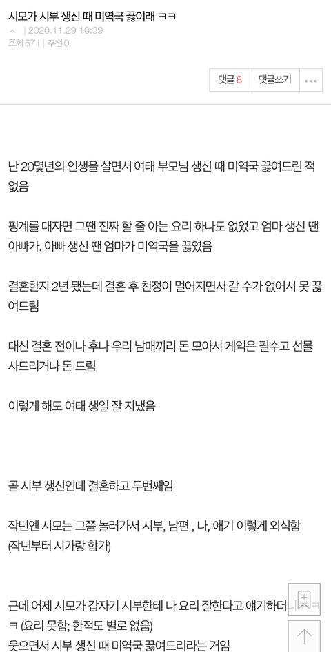 [원본지킴이] 시모가 시부 생신 때 미역국 끓이래 ㅋㅋ