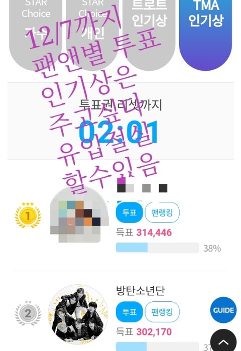 3.그사실 팬별앱 투표. 탄이들 시상식참석하는거임.