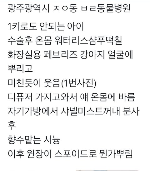 안녕하세요, 인스타 보던 중 충격적인 글인 동물 병원 학대 글을 보게되고 널리 알리고자 작성합니다.