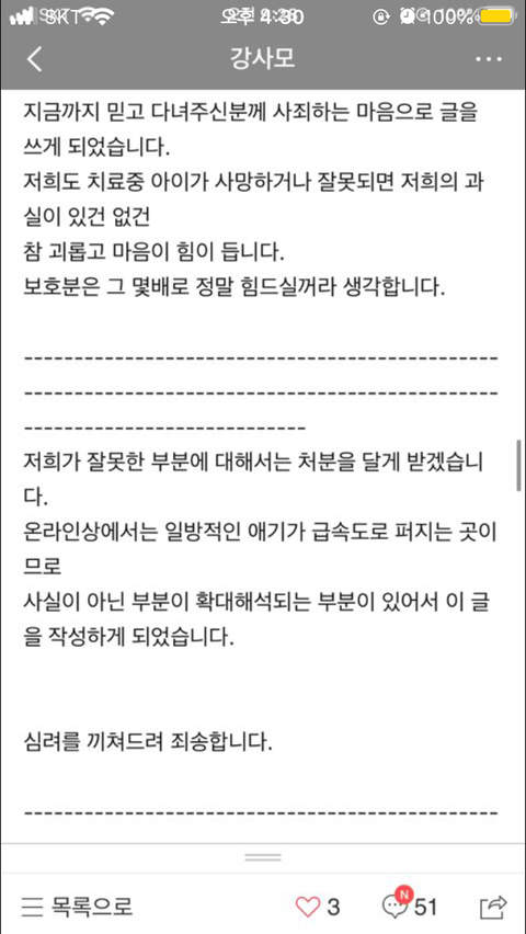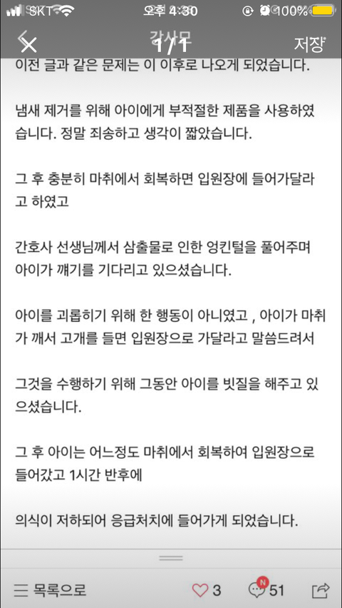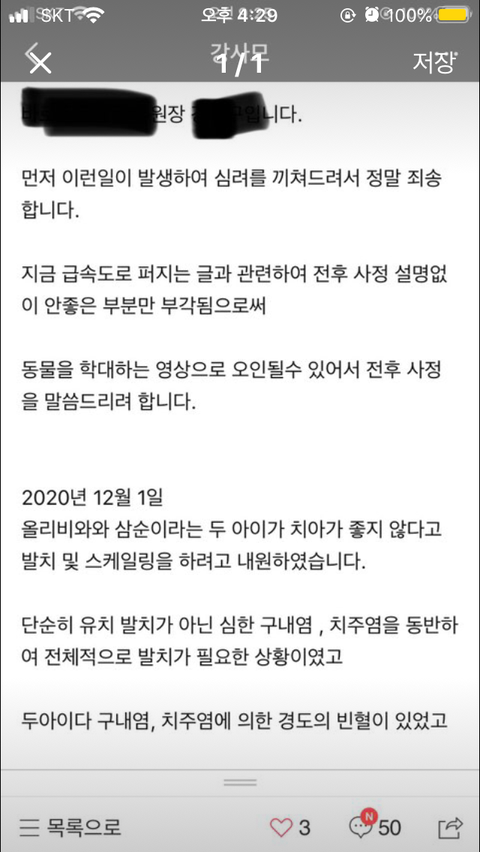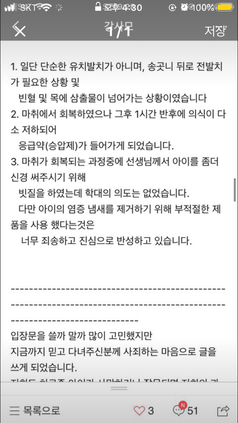 이 후 병원 측에 해명글 (이랍시고 사실상 변명글)
