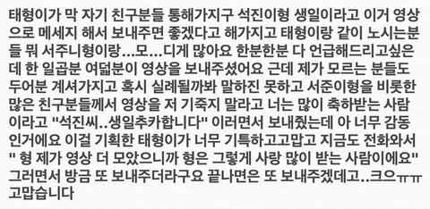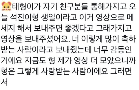 김뷔 석진이 생일이라고 지인들에게 부탁해서