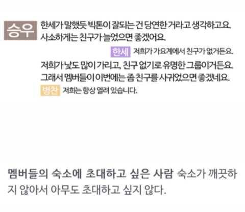 친구가 없는 편이지만 숙소 더러워서 누구 초대는 X