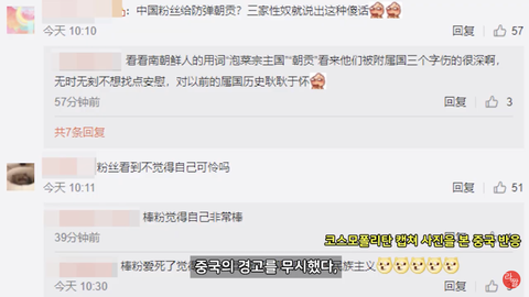 사실 이 전의 상황으로는 이미 중국이 방탄의 역사 발언으로 한국전쟁에서 중국의 희생과 도움을 모욕했다며 기사를 내고