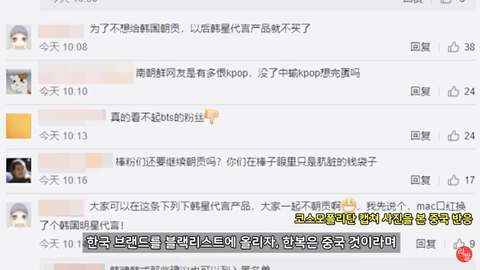 현재 방탄 한복 언급 영상에는 전세계 방탄 팬들의 한복 언급 댓글이 많이 올라오고 한복은 한국의 전통의상이고 한국을 지지한다는 댓글들도 늘어나고 있대