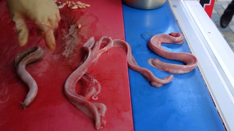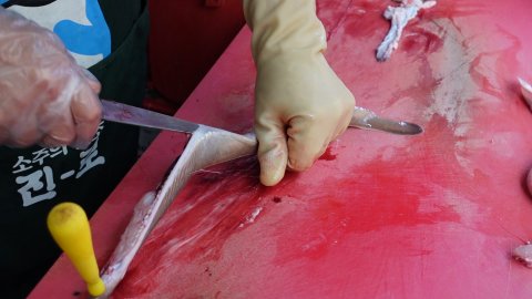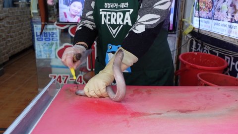 이렇게 입구에서 사장님이 산 곰장어를 직접 손질해주십니다