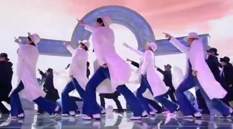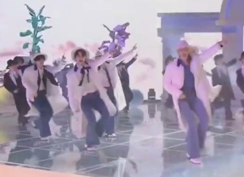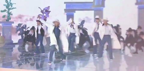 (범규 휴닝 수빈 연준 태현 순으로 모자전달춤)