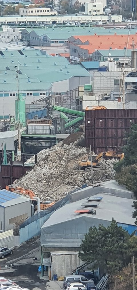현재 아파트 뒷편 공장들 중 비산먼지가 밤낮 가리지 않고