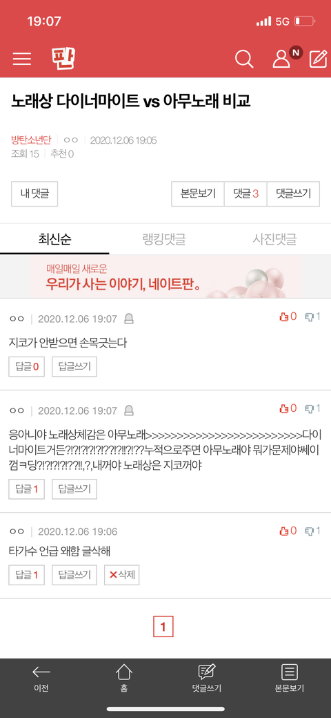 ⚠️저 밑에 다이너마이트vs아무노래 여기서(댓도)