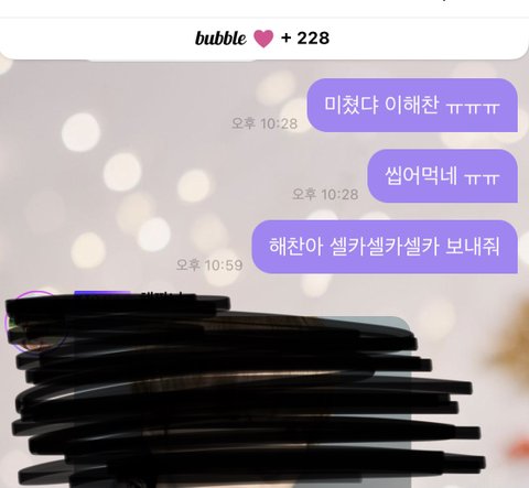 와 나 방금마크버블받고 해찬아 너 오늘 셀카 보내야돼ㅜㅜ