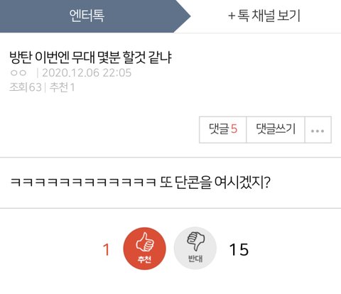 미리 분량 오질 거라고 욕 먹었는데, 6시간내내 기다린 게 15분이면 밑댓들 니들같으면 안 빡치겠냐 ㅋㅋㅋ 욕은 욕대로 먹고 기다리는 건 또 너무 길고 막상 시간은 15분밖에 안 되고 ㅋㅋㅋㅋㅋ