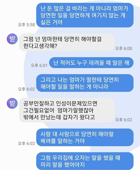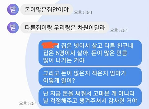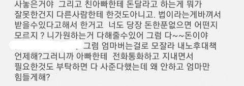 사진은 엄마랑 대화한 거 조금 캡쳐한 겁니다. 참고해주세요