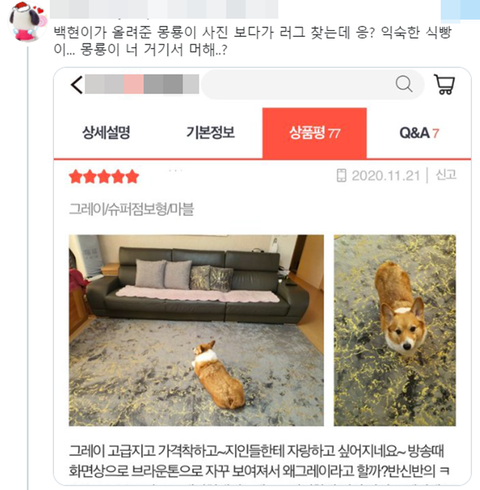 : 백현 인스타에 올라온 반려견 사진 (위에 짤) 을 보게된 팬이 손민수 하고싶어서 러그 찾아보다가