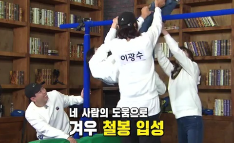 겨우 철봉에 매달리게 됐고,