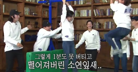 런닝맨에 김소연이랑 유진이 철봉 매달리기 대결을 하는데,
