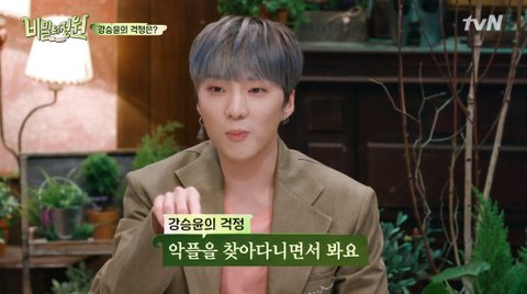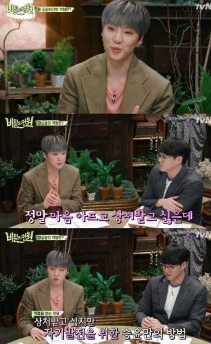 2018년도 '비밀의 정원'이라는 심리, 성격을 분석해주는 프로그램에 위너 강승윤이 출연했는데 이날 강승윤의 고민은 악플을 많이 써치하는 것