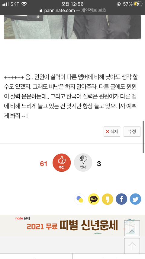 이 댓글 진짜 너무한다. 먹금 해야하는 건 알지만 너무 속상하네. 윈윈이는 한국 활동이 좋으니까 아직까지 여기 남아있는 거겠지.. 자꾸 윈윈이 실력 운운하는데.. 너무 속상해. .. ㅠㅠ 그리고 여장이나 할 줄 안다는 건 .. 진짜 할 말 없다. 아무리 그래도 그렇지 말을 어떻게 이렇게 해 .. ㅎㅎ 진짜 .. ㅠㅠㅠㅠ너무 속상해.. 하아 .. 진짜 ㅠㅠ 윈윈이 예뻐해주지 못 할 거면 싫어하진 말아조 ㅠㅠ 진짜 난 너무 속상해