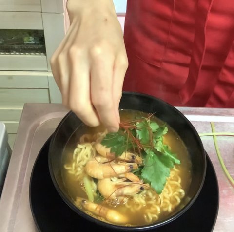 라면을 미나리 비빔면으로
