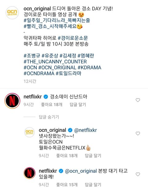 넷플릭스 공계까지 합세해서 경소데이(경이로운 소문 방영날)를 즐거워 함