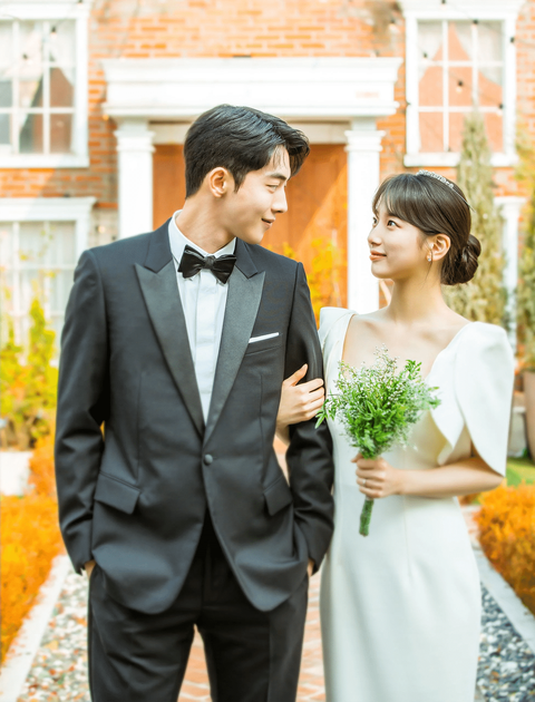 남녀주인공의 웨딩 사진임