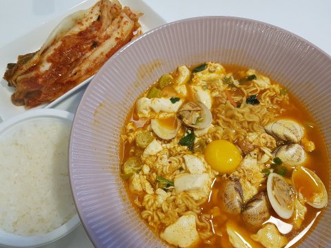라면 반봉지,순두부 반절!!조개도 추가했어요~