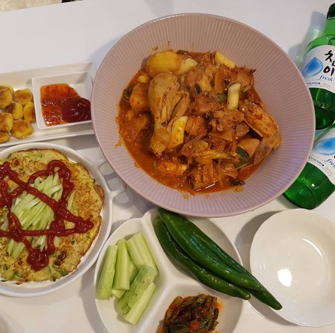 자주 해먹는 닭볶음탕과 오이 올린 계란부침!