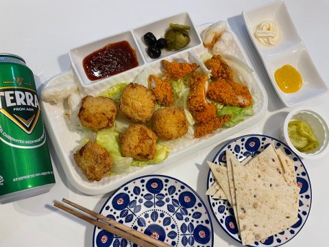코코넛오일로 만든 감바스와 마늘 바게트~