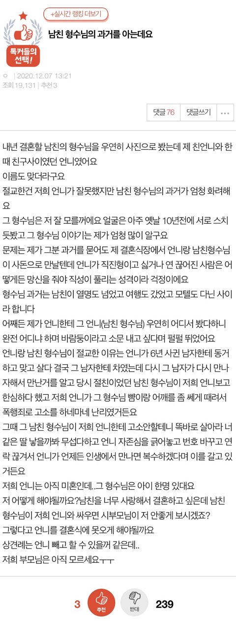 남친 형수님이 시동생 인생 망치지 않게 이 결혼 말려주시기를..
