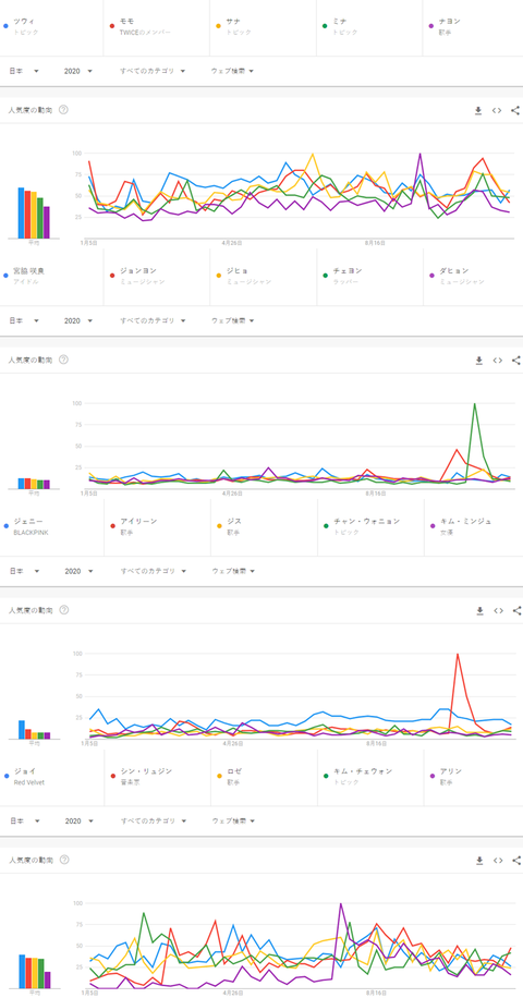 2020년 일본에서 가장 많이 검색된 한국 여자아이돌 TOP20