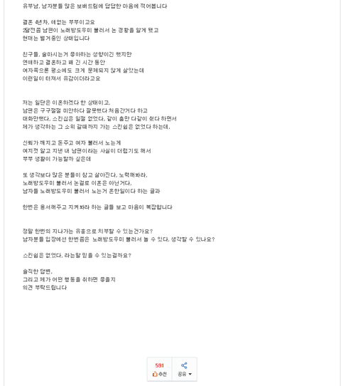 아내가 반대로 친구들이랑 선수불러서 놀면 이해할수있니? 말이되는소릴해야지 친구가보내줬는데 이거보고 너무화나네 내가 보수적인거야? 저런생각을 한다는게 신기하네