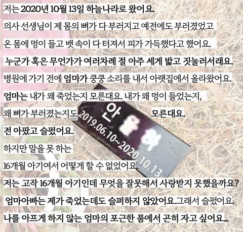 별이 된 아기 정인이를 위해 당신의 몇분을 써주세요.. 간절히 부탁드립니다..!