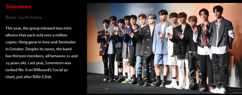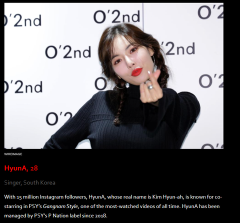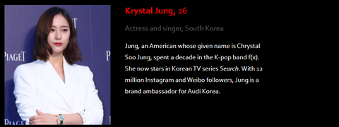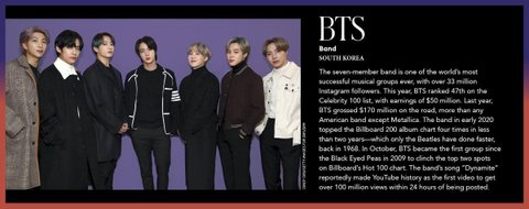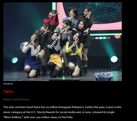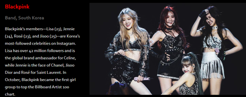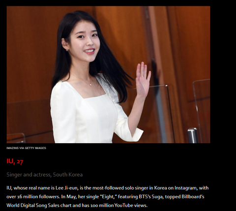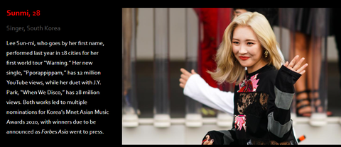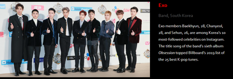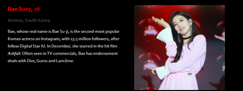 포브스 선정 아시아 소셜미디어에서가장 영향력있는 연예인 100인에 들어간 한국 연예인