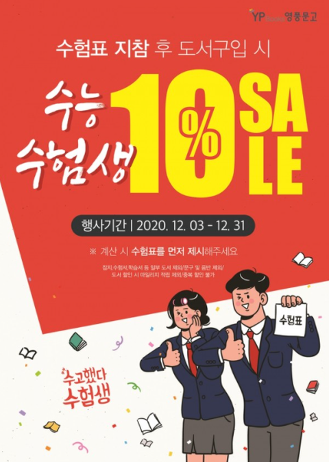 수험표 지참시 구매 금액 10% 할인