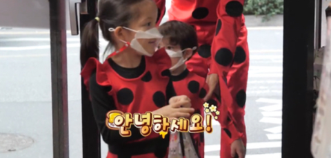 칼국수 집에 도착해서 인사하는 나은이 ㅋㅋ