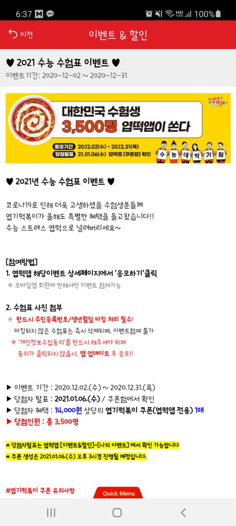수험표 인증하면 엽떡쿠폰 준대