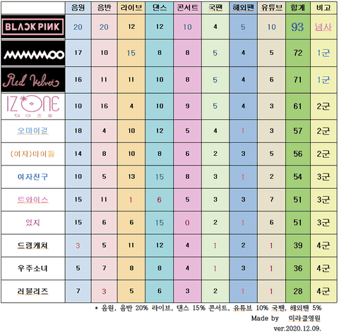 2020 걸그룹 순위 최신버전