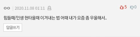 나는 힘들때 유튜브로 내 본진 노래중 가사가 공감가는 노래나 공감가는 말하는 영상 찾아보는편이야! 특히나 내가 좋아하는 사람이 전하는 메세지여서 그런지 더 공감가고 자세히 생각해보게 되는거같아서 힘이 되더라고!!
