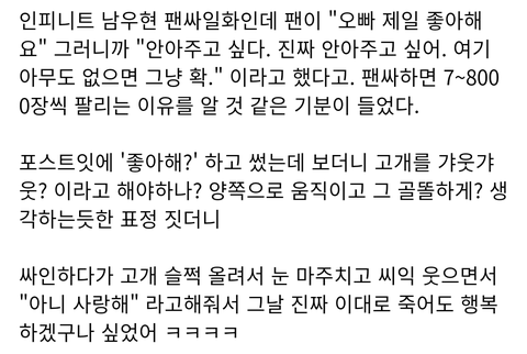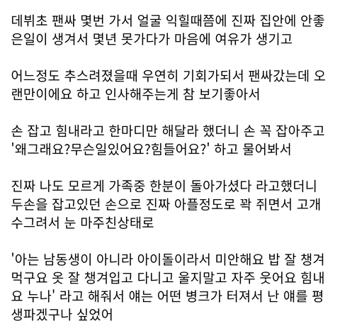 +) 와 나 이제 봤는데 너무 귀엽고 설레는 썰 많구나...힘들 때 마다 여기 와서 읽어도 되겠다 특히 마크님 썰 너무 귀여운 거 아니니