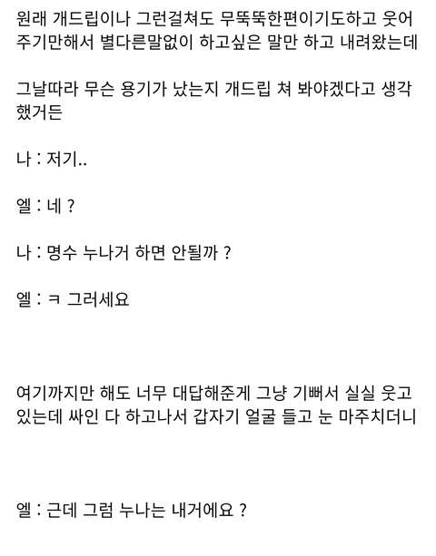 설레는 것도 좋고 재미있는 것도 좋으니까 하나씩 올려주라 심심할때 마다 읽게ㅎㅎ