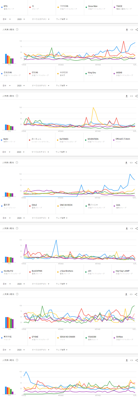 2020년 일본에서 가장 많이 검색된 음악 아티스트