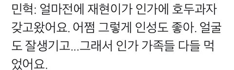 재현이 잰니가요에 호두과자 들고가서 스탭 분들 나눠드렸대!!