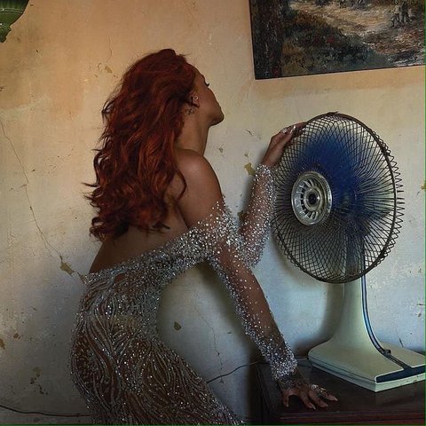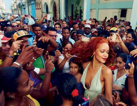 사람들이 리한나 둘러싸고 카메라 들이대고 있는데