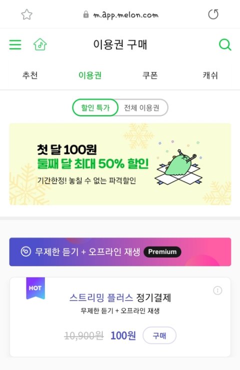 1. 멜론 첫달 100원
