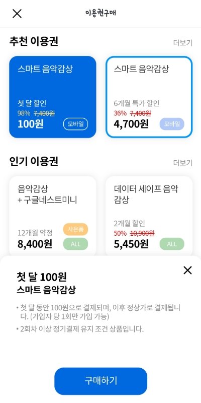 2. 지니 첫달 100원 (모바일 전용)