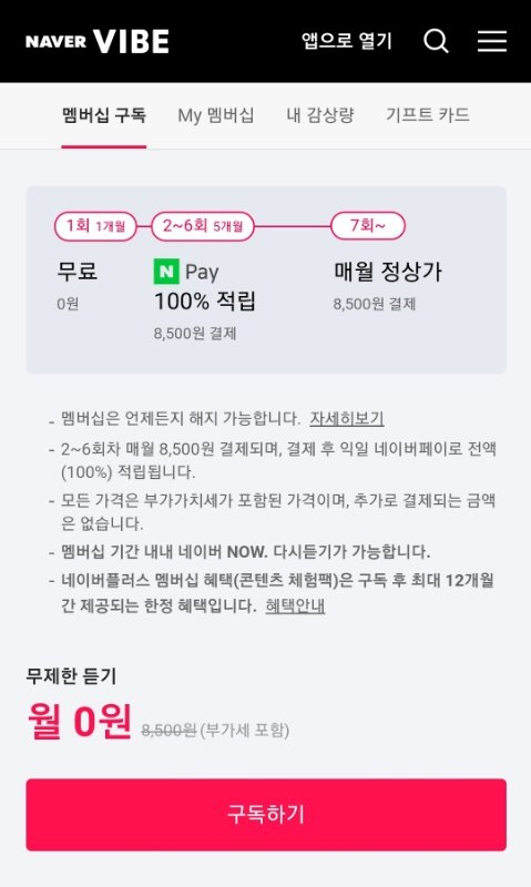 3. 바이브=옛날 네이버뮤직 첫달 0원