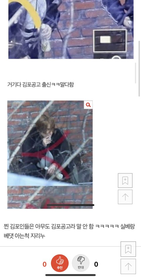 김포 뺑뺑이 아니라서 내신 낮으면 갈 학교도 ㅂㄹ 없고 정우 다닐 당시 솔터고 이런 학교는 신생 학교라서 그 당시 내신 낮은 애들은 별로 가지도 않음ㅋㅋㅋㅋ 제일공고=양아치학교 이렇게 알아듣는게 웃기다는거지ㅋㅋㅋㅋ 그냥 내신 낮은 애들이 가는 곳임 그런 애들중에 양아치가 많았던거고 제일공고 출신 양아치들중에 정우랑 같은 중 나온 애들은 별로 없음 ㅇㅇ